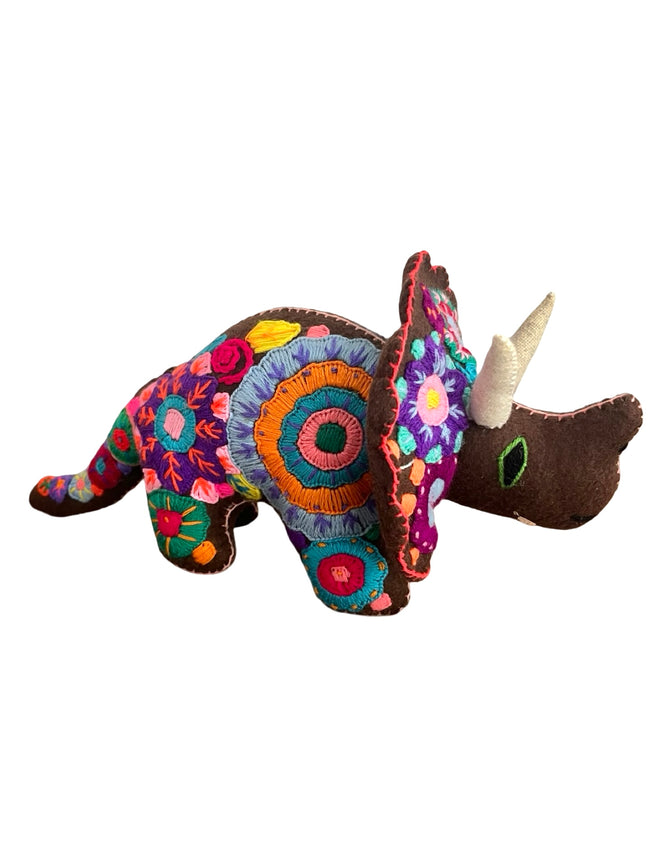 Handmade magical embroidered felt triceratops from Chiapas with custom sherbet colors.
