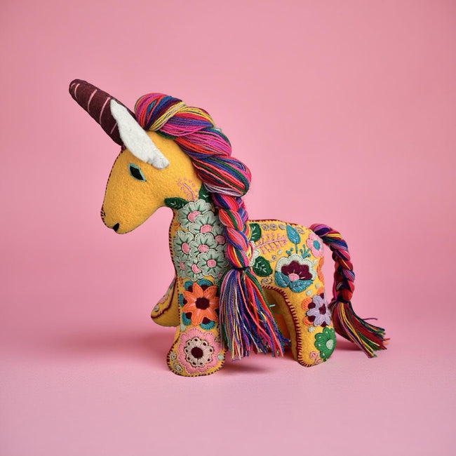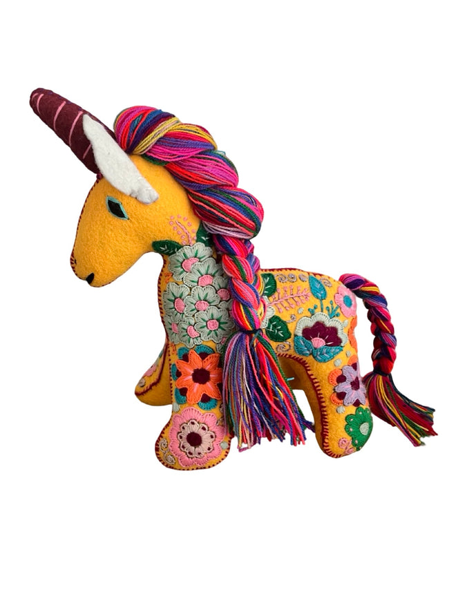 Handmade magical embroidered felt unicorns from Chiapas with custom sherbet colors.