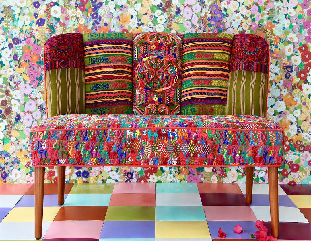 The furniture we design and create is upholstered with huipiles, cortes, tzutes from Maya communities.